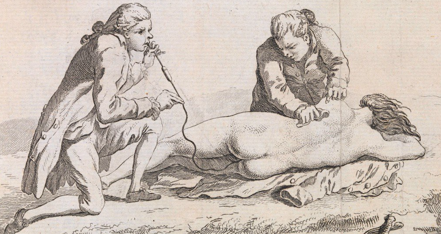 Dönemin tıp anlayışına göre, boğulanların aşırı ıslak balgam ve soğuk kara safra problemleri vardı. Bu nedenle, resüsitasyonun anahtarı olarak sıcak ve kuru maddelerin kullanılması ön plandaydı. Tıbbi maddeler, fildişi şırınga aracılığıyla ağızdan verilebildiği gibi, tütün dumanı pipoları da popüler bir tedavi olarak kabul ediliyordu.